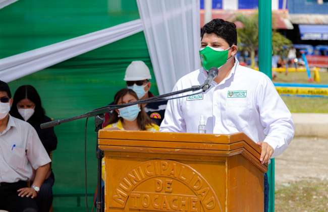 El pasado sábado en Tocache, al sur de la región San Martín se desarrolló la ceremonia dando inicio a la ampliación y mejoramiento del sistema de agua y alcantarillado de la ciudad de Tocache, en el acto se dieron cita el alcalde provincial, regidores, subprefecto provincial, representante de la EPS EMAPA San Martín, ex alcaldes provinciales, presidentes de los asentamientos humanos y población. El evento se desarrollo con el estricto cumplimiento de los protocolos de seguridad por la pandemia.