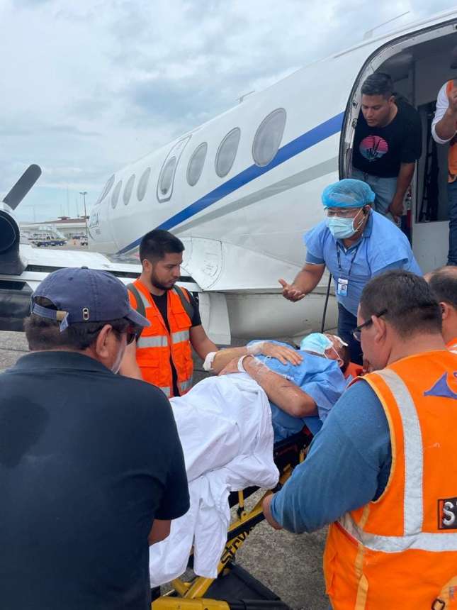 El piloto Villacorta Caballero fue diagnosticado con fractura en la zona maxilar superior, su estado de salud no representa peligro alguno, pero tiene que ser operado por un tema estético con una cirugía de alta complejidad. El pasajero Giovanni Panduro también fue evacuado a la capital de la República en el mismo avión de la empresa Saeta que trasladó al capitán Villacorta.