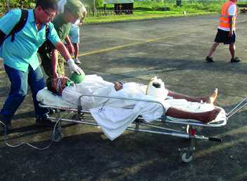 Un avión de la Fuerza Aérea del Perú llegó a Tarapoto procedente de Piura, para trasladar al paciente a Lima, luego que el gobernador regional de San Martín Víctor Noriega Reátegui, coordinó con el ministro de Salud Aníbal Velásquez, para trasladar a la capital de la República al rondero natural de la localidad de Dos Unidos que se enfrentó con un grupo de asaltantes junto a sus compañeros que también resultaron heridos.
