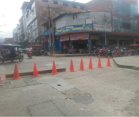 La cuadra tres del jirón San Martín de Tarapoto se verá interrumpida por los trabajos que realiza el personal de la Empresa Municipal de Agua Potable y Alcantarillado (EMAPA), donde descubrieron que la tubería de desagüe está averiada por la antigüedad, lo que ocasionó hundimiento de la pista.
