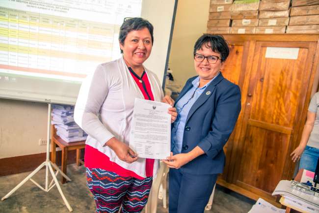Ugel Lamas hace entrega de manera oportuna Resoluciones a profesores adjudicados