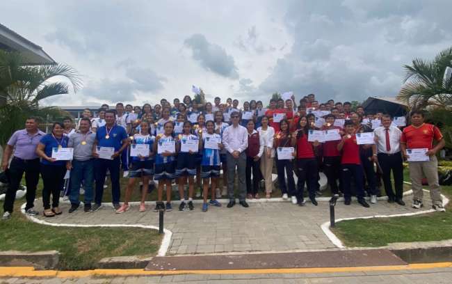 Un total de 103 estudiantes que ganaron en los juegos deportivos nacionales escolares etapa macroregional fueron premiados por la Unidad de Gestión Educativa Local San Martín, los mismos representan a las instituciones educativas Ofelia Velásquez, Juan Jiménez Pimentel, Virgen Dolorosa, Cleofe Arevalo, 004 Tupac Amaru, Ciencias, San Antonio de Padua, Innova School.