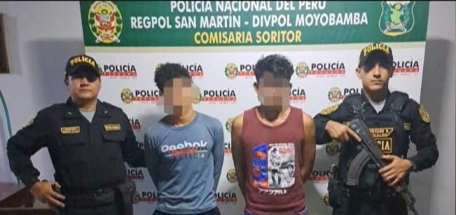 Un joven de 22 años y un adolescente de 17, fueron intervenidos por el presunto delito contra la salud pública, Tráfico ilícito de Drogas (TID), dedicados a la comercialización de drogas, cuando deambulaban por el jirón Miguel Grau con Ricardo Palma en el distrito de Soritor, quienes intentaron darse a la fuga.
