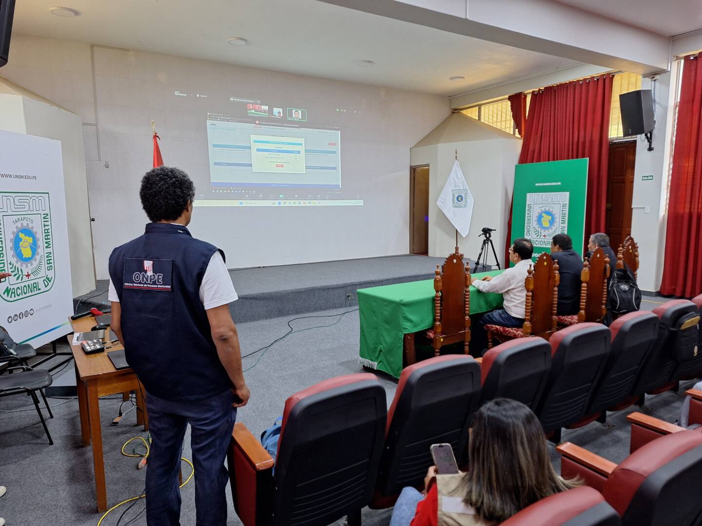 La Oficina Nacional de Procesos Electorales (ONPE) a través de su oficina regional de coordinación (ORC) Tarapoto brinda asistencia técnica, en segunda vuelta electoral, a la Universidad Nacional de San Martín (UNSM) para la elección del rector y vicerrectores.