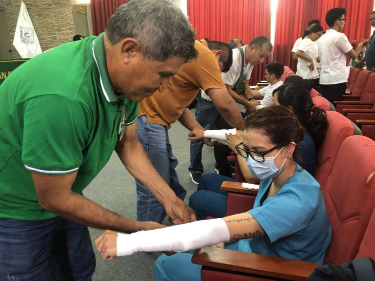 Con el objetivo de estar preparados ante cualquier caso de urgencia médica que podría suscitar en la universidad, la Dirección de Bienestar Universitario a través del Tópico Universitario, capacitó al personal de seguridad y vigilancia de la Universidad Nacional de San Martín (UNSM), en los temas de Primeros Auxilios y traslado de pacientes. Esta capacitación estuvo a cargo del personal de salud del Tópico Universitario, con la Dra. Susy Nopeco Amasifuén y la Lic. Enf. Katherine Jennifer Zegarra Alvarado; además, se contó con el apoyo del personal de sanidad de la Policía Nacional del Perú y área médica de la Compañía de Bomberos de Tarapoto.