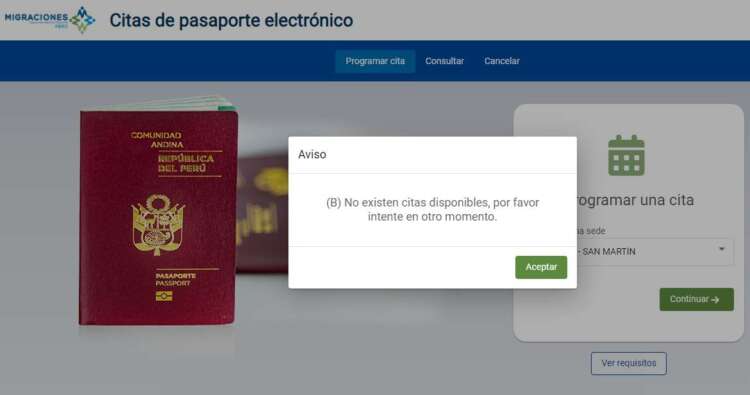 Sin embargo, muchos de esos trámites se ven entorpecidos por demoras en el “sistema citas de pasaporte electrónico” página virtual que al parecer se encuentra colapsada. Ahora, llama la atención que antes de que el usuario consiga la cita electrónica, migraciones cobre un derecho de S/98.60 por expedición de pasaporte.