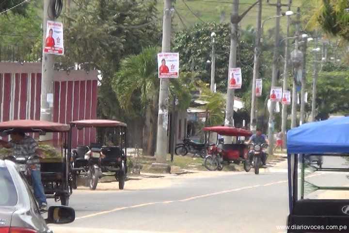 Voces, recorrió las principales calles del distrito de Cacatachi y en el ochenta por ciento de poste se encontró paneles publicitarios del partido de la estrella, generando malestar en los vecinos y adversarios políticos del alcalde Cotrina Vásquez. (Hugo Anteparra)