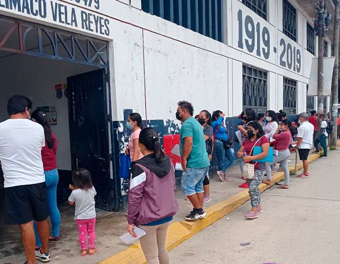 Los padres de familia hacen forman largas colas con la esperanza de poder alcanzar alguna vacante para sus menores hijos en colegios de Moyobamba, como el caso de la I.E. Juan Clímaco Vela Reyes, ubicado al frente de la plaza de armas, donde llegaron decenas de padres desde horas de la madrugada.
