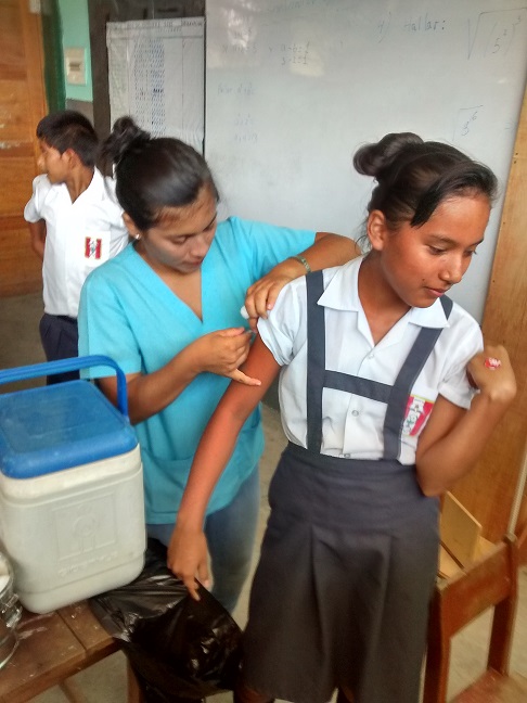 El día de hoy, en las instalaciones de la Institución Educativa N°- 353- “Mártires de la Amazonía” del Centro Poblado de Alianza, Distrito del Pongo de Cayanarichi, se desarrolló la ceremonia-símbolo e intersectorial del Lanzamiento de la Campaña de Vacunación Contra el Virus del Papiloma (VPH), dirigida a las escolares-mujeres de entre 9 a 13 años de edad de la jurisdicción de la Red de Salud de Lamas.