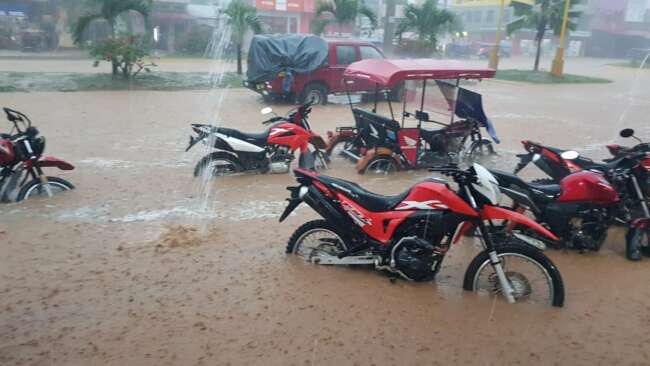 La fuerte lluvia se inició cerca de las cuatro de la tarde, en cuestión de minutos se inundó la vía principal desde el frontis de la Comisaría de Picota, hacia sector Las Almendras, a lo largo de ese tramo, se cayeron varias motocicletas estacionadas y algunos automóviles no pudieron avanzar, sin embargo, otras calles aledañas también inundaron.