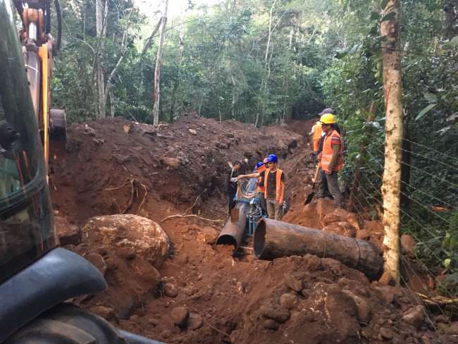 En la zona del Alto Shilcayo, la Municipalidad Provincial de San Martín, inició el 1 de agosto una obra de tubería de agua. Con varias unidades de maquinaria pesada avanzó aproximadamente 800 metros de zanja de 1.5 metros de profundidad en el centro de la trocha carrozable para enterrar los tubos.