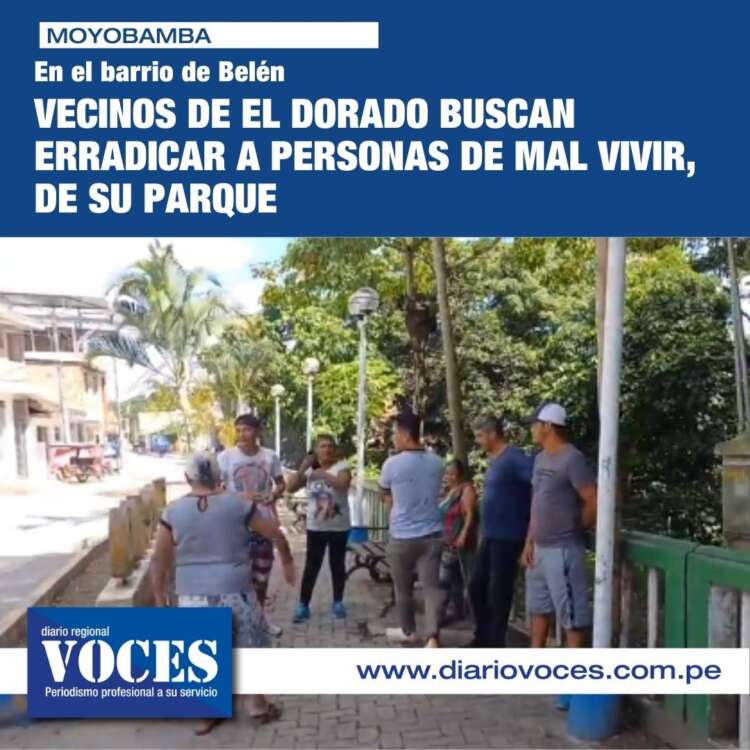 Un grupo de vecinos de la primera cuadra del sector El Dorado en el barrio de Belén, se organizan para buscar la erradicación de varios alcohólicos y personas de mal vivir, que han hecho de su calle, veredas y parque su guarida de donde agreden a los vecinos y a toda persona que pase por allí, manifestó Percy Saldaña, presidente del sector.