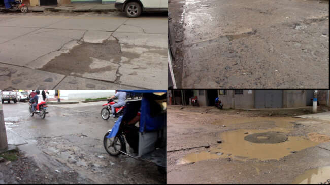 El mal estado de las vías de comunicación en toda la ciudad de Moyobamba viene afectando a los ciudadanos, por ejemplo, en pleno centro de la ciudad en el Jr. Alonso de Alvarado, cuadra 10, esta calle está llena de huecos y baches, el jr. Emilio Acosta con Serafín Filomeno, cerca del mercado central, es otra de las arterias que se encuentra en pésimo estado.
