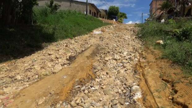 La calle da la impresión que se trataría de un río seco, desde hace un año no puede ser transitada por los vehículos mayores y menores y los más afectados son los alumnos de las instituciones educativas que a diario tienen que pasar por ese lugar. (Hugo Anteparra)