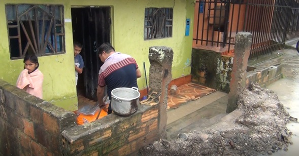 Durante el fin de semana ante la presencia de intensas lluvias, se vieron obligados a sacar el agua con escobas y colocar costales de arena, pero ante el incremento de las lluvias estas defensas sirvieron muy poco ocasionando que de todos modos sus pertenencias resulten afectadas.