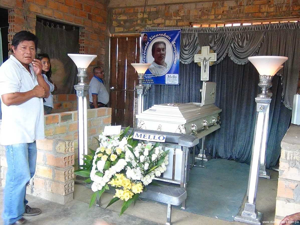 En la tercera cuadra del jirón Sinchi Roca del sector Progreso de La Banda de Shilcayo, son velados los restos mortales de Benjamín Sinarahua Sangama, el albañil de 57 años de edad, quien murió instantáneamente, tras ser arrollado por el volquete, luego de quedarse a la deriva cuando el conductor identificado como Edgar Flores, en su desesperación saltara del vehículo.