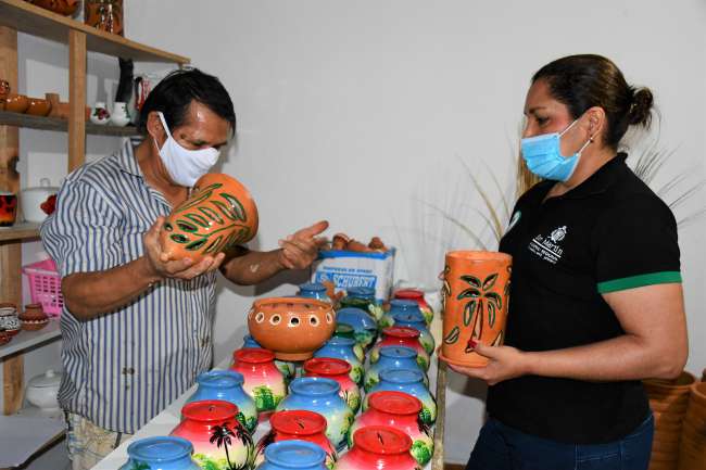 Junto al equipo del programa Amachay de la municipalidad distrital de la Banda de Shilcayo, la autoridad regional visitó a Eudocio Geremías, artesano que desarrolla un trabajo manual y realiza piezas totalmente exclusivas personalizando las creaciones para sus clientes. Luego se dirigió a la Asociación de Vivienda La Victoria, al domicilio de Romelia Chujandama Pizango, tallista que realiza obras de talladura en madera para conocer de cerca el trabajo manual que realiza la emprendedora.