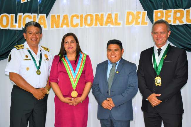 Policía Nacional del Perú entregó a Nohemí Aguilar Puerta Resolución Jefatural que reconoce al gobernador Pedro Bogarín Vargas su invalorable apoyo a esta institución castrense