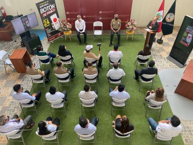 En el marco del convenio de cooperación interinstitucional suscrito entre la Corte Superior de Justicia de San Martín, presidida por el juez superior titular Heriberto Gálvez Herrera, y la Municipalidad Provincial de San Martín, a cargo de su alcalde Tedy Del Águila Gronerth, se realizó el lanzamiento oficial del aplicativo móvil “Botón de Pánico”, que permitirá auxiliar oportunamente a las mujeres e integrantes del grupo familiar, que cuenten con medidas de protección vigente y se encuentren en riesgo severo.