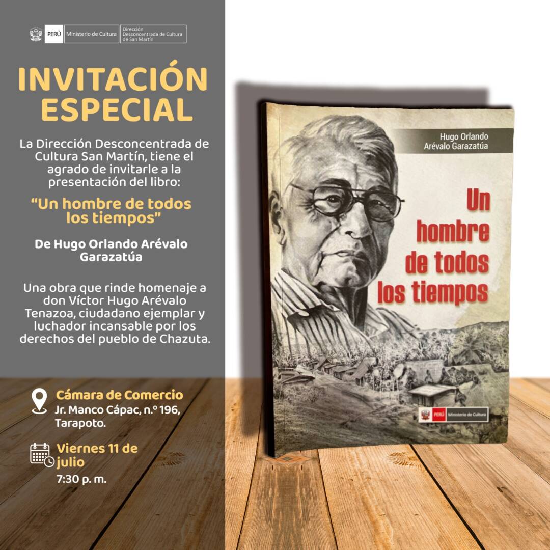 «Un hombre de todos los tiempos» es el título del libro del periodista Hugo Orlando Arévalo Garazatúa, una publicación que rinde homenaje a la vida y obra de su padre, Don Víctor Hugo Arévalo Tenazoa, destacado líder social, gestor público y visionario que dedicó su existencia al progreso de su tierra natal, Chazuta, distrito enclavado en la región San Martín.