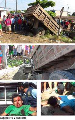 El volquete fue a parar en una alcantarilla, la arena que transportaba quedó esparcida por el jirón Tupac Amaru, según testigos del hecho el conductor del camión identificado como Roberto Ruiz Orbe de 38 años de edad, realizó maniobras temerarias a fin de evitar una desgracia mayor, ya que aparentemente el vehículo que manejaba no tenía claxon.
