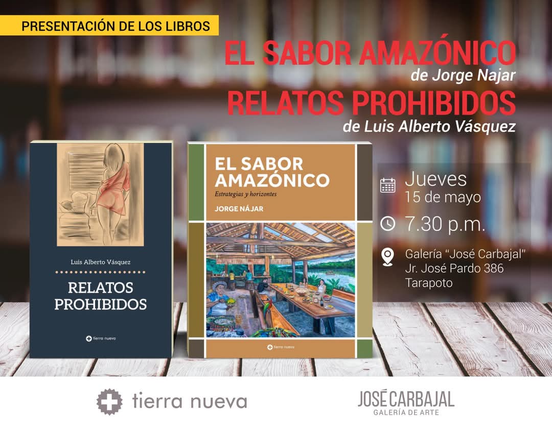La selva no solo canta, también escribe. Este jueves 15 de mayo, a las 7:30 p.m., la Galería de Arte “José Carbajal” de Tarapoto se convertirá en escenario de una significativa velada cultural con la presentación de dos obras que reafirman el vigor de la literatura amazónica: “El sabor amazónico. Estrategias y horizontes” de Jorge Nájar y “Relatos prohibidos” de Luis Alberto Vásquez.