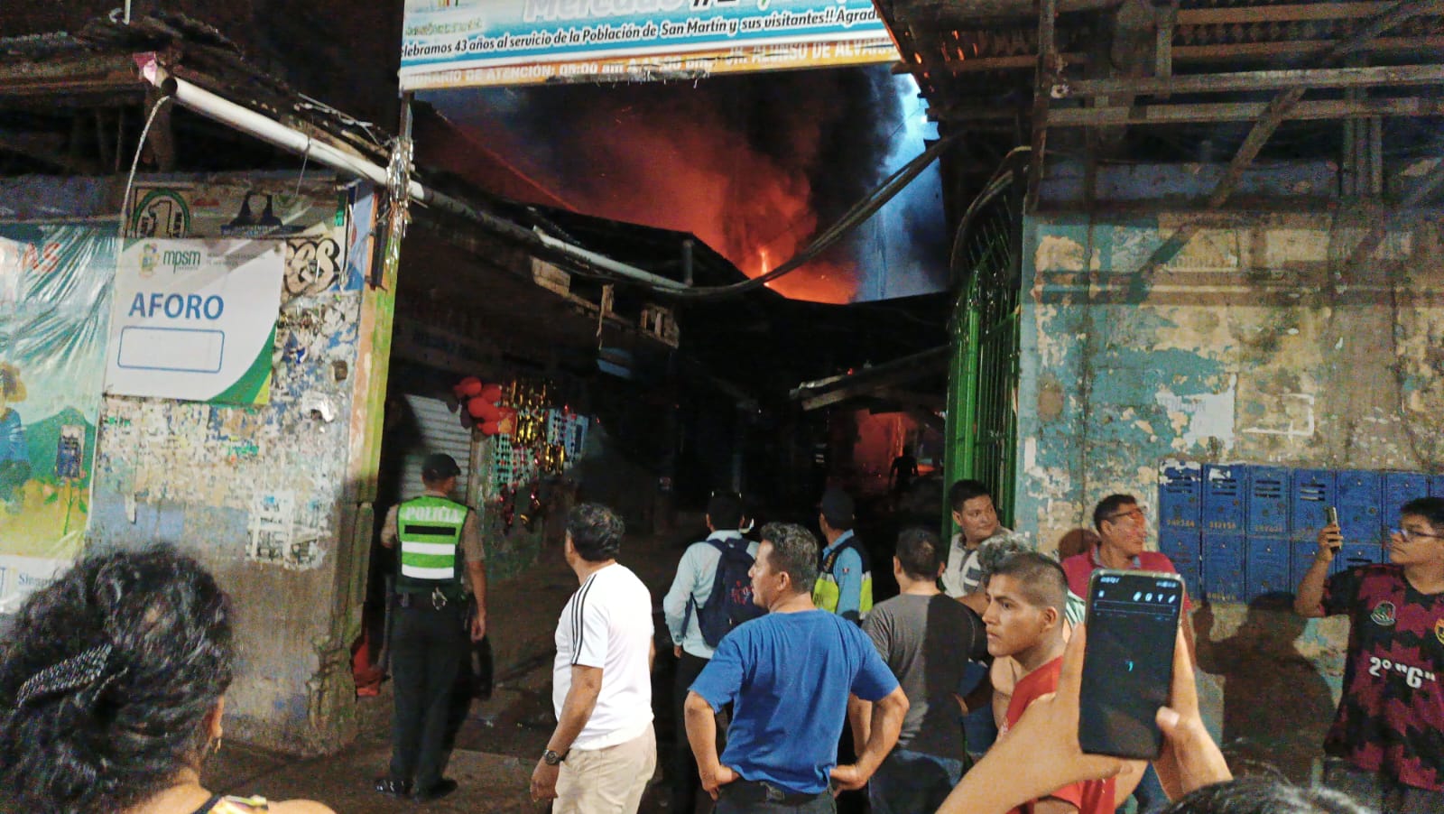 Anoche, un devastador incendio de categoría tres arrasó con una sección del mercado dos de Tarapoto, dejando graves daños materiales a su paso. Bomberos y agentes de policía desplegaron esfuerzos sin descanso para contener las llamas.