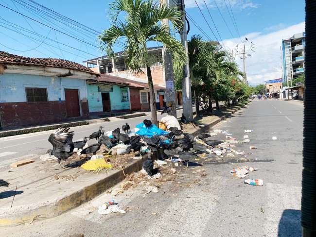 CAMIÓN RECOLECTOR. A pesar que el camión recolector de residuos pasa diariamente por los centros de abastos, incluso por el barrio Comercio se hace dos veces diarios el desplazamiento, la gente inconsciente, prioriza la venta ambulatoria que el ornato de la ciudad, trayendo consigo un cerro de basura.