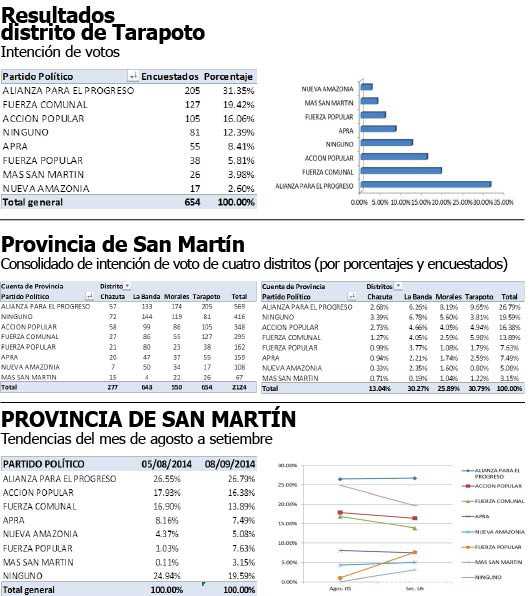 Para tranquilidad de los lectores de esta página, esta no es una encuesta ilegal ni mucho menos: es la única encuestadora que está realizando esta labor a nivel regional y sus resultados difícilmente favorecen a un candidato o partido, sino, muy por el contrario hay tres que está bien ubicados: Acción Popular (en Morales y Chazuta), Fuerza Popular (La Banda de Shilcayo) y Alianza Para el Progreso (provincia de San Martín).