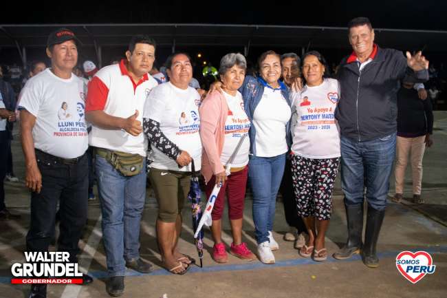 En esta visita también estuvieron presentes junto al candidato del distrito Huimbayoc por Somos Perú, Bertony Macedo, y los candidatos a la consejería regional por la provincia San Martín, Jorge Corso y Jessica Hildebrandt, quienes confirmaron que Walter Grundel volvería a otros pueblos del bajo Huallaga.