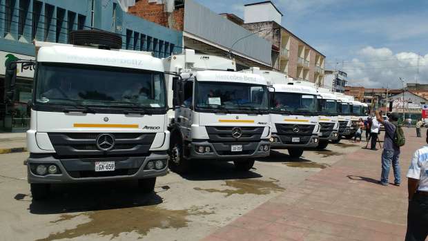 Llegaron seis compactadoras, una compactadora de residuos sólidos pata de cabra, dos camiones baranda, un volquete y una camioneta doble cabina.