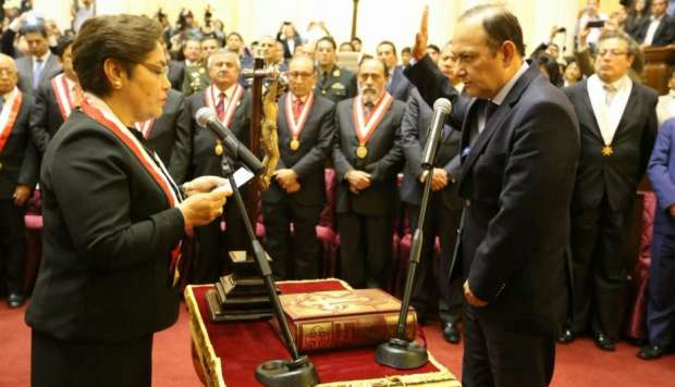 La presidenta del Parlamento, Luz Salgado, fue la encargada de tomar el juramento a Walter Gutiérrez, quien fue elegido el pasado martes al obtener 94 votos.