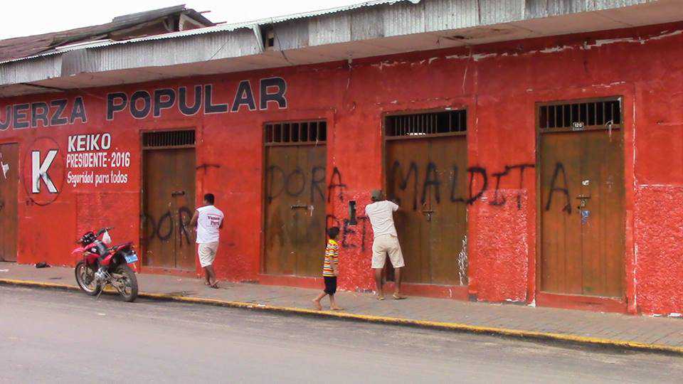 En Yurimaguas pintarrajean local de Fuerza Popular y del Apra